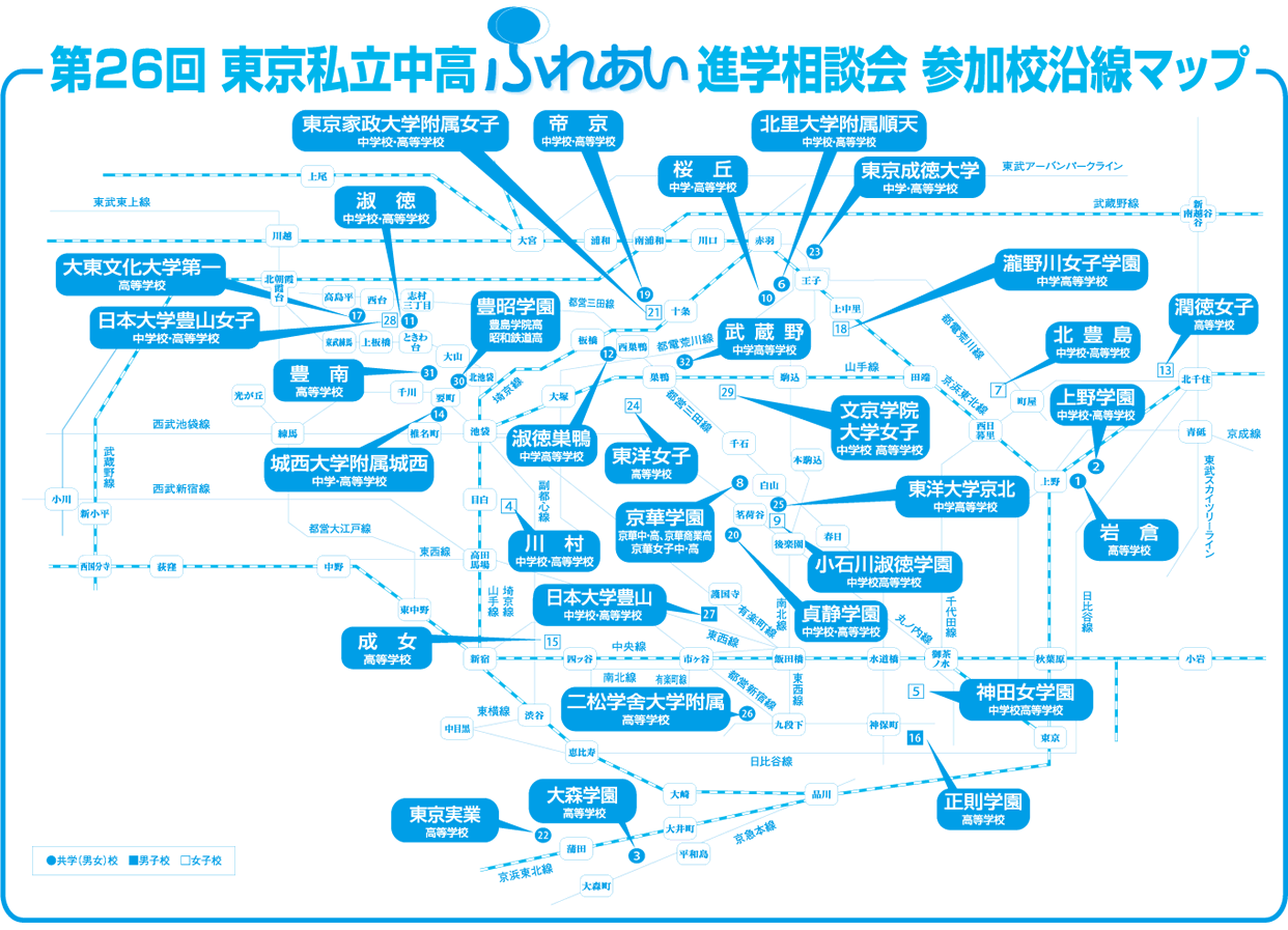 埼玉県の皆さまに、より知っていただくため毎年、浦和・川口で行っています東京私立中高ふれあい進学相談会も今年で第26回を迎えます。